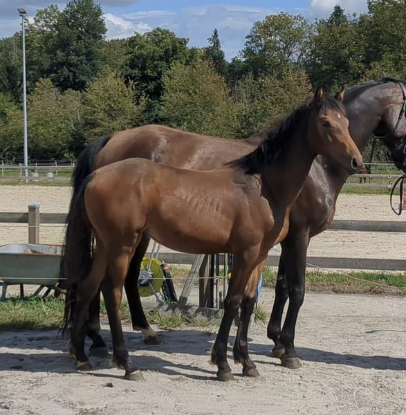 Aus eigener Zucht bieten wir hier ein Stutfohlen mit korrektem Fundament und einem tollen Charakter. Sie hat 3 gute und raumgreifende GGA. Sie kennt Halfter und kennt den täglichen Umgang und den "geführten" Gang zur Koppel. Vater Impressiv VDL kann sich mit einem Pedigree ausweisen, dass viele erfolgreiche Sportpferde vorweist. Die Mutter lief erfolgreich bis Springpferde L.