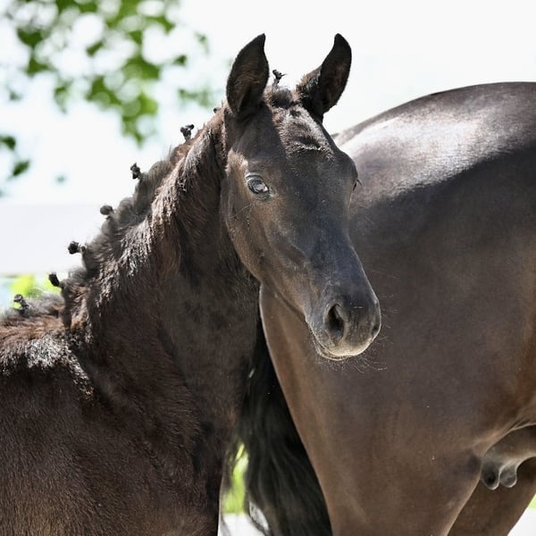 Tempranilla SF de TIE BREAK et de Florentina (Florestan x Weltmeyer). Le père TIE BREAK de la station de monte Schockemöhle a été double vainqueur du HLP avec des notes exceptionnelles de 9,17 et 8,70. Lors de sa première épreuve de chevaux de selle, il a immédiatement terminé à la première place sous la conduite de Lukas Fischer. La mère du poulain, Florentina, a notamment donné naissance à Revoluna, primée avec la 1d lors de la Herwart von der Decken-Schau et désormais classée M*.