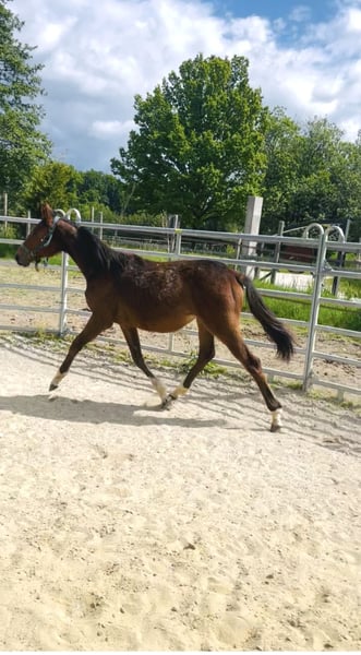À vendre, une jument prometteuse d'Esmeraldo, née en 2024. C’est une jument expressive, avec une taille estimée à 1,65 m, qui se distingue par ses qualités exceptionnelles en saut d’obstacles. Cette jument talentueuse montre déjà un grand potentiel et est idéale pour les cavaliers ambitieux à la recherche d’un partenaire fiable pour le saut d’obstacles. Elle se caractérise par sa joie de mouvement, son caractère équilibré et sa grande aptitude à apprendre. Facile à manipuler, elle possède un tempérament amical qui en fait une compagne idéale pour des cavaliers de tous niveaux. Que ce soit pour l’entraînement ou la compétition, elle saura certainement apporter beaucoup de plaisir. Pour toute question ou intérêt, je reste à votre disposition. Ne manquez pas cette opportunité d’acquérir un cheval exceptionnel !