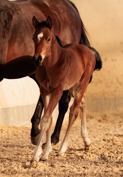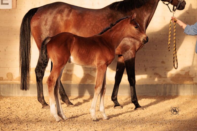 Na sprzedaż jest obiecująca klacz po Esmeraldo, urodzona w 2024 roku. To ekspresyjna klacz o szacowanej docelowej wysokości w kłębie wynoszącej 165 cm, która zachwyca swoimi doskonałymi cechami w skokach. Ta utalentowana klacz już teraz pokazuje ogromny potencjał i jest idealna dla ambitnych jeźdźców, którzy szukają niezawodnego partnera do sportu skokowego. Zachwyca swoją chęcią do ruchu, zrównoważonym charakterem i gotowością do nauki. Dobrze się z nią obchodzi i ma przyjazne usposobienie, co czyni ją idealną towarzyszką dla jeźdźców na każdym poziomie zaawansowania. Czy to podczas treningu, czy na zawodach, na pewno sprawi wiele radości. W przypadku zainteresowania lub dodatkowych pytań, jestem do Państwa dyspozycji. Nie przegapcie tej okazji, aby nabyć wyjątkowego konia!