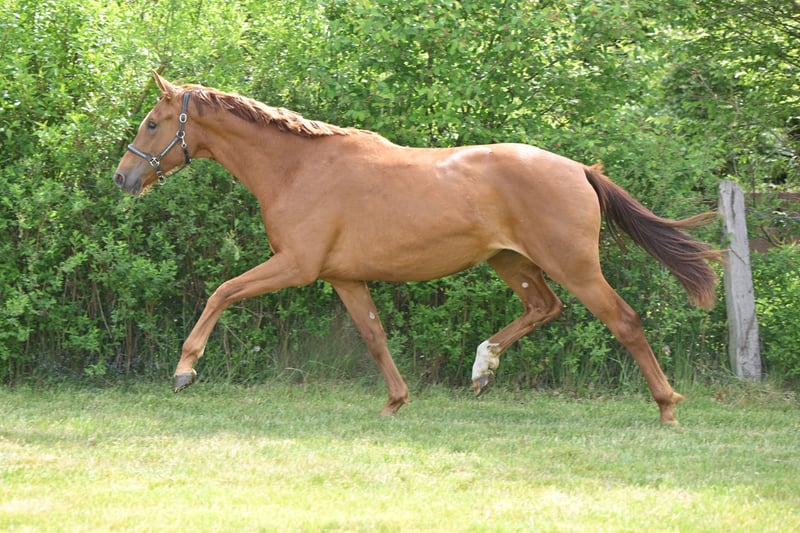 Hochinteressantes Nachwuchs-Dressurpferd Bewegung pur! Mit dem ganz großen Tritt ist diese 2jährige Tochter des S***-Dressur erfolgreichen VA BENE ausgestattet. Mutter Staatsprämien- und Brillantringstute Quinta B legte eine sehr gute Stutenleistungsprüfung ab und war in Reitpferdeprüfungen platziert. Ihr Vollbruder ist S-Dressur erfolgreich. Aus dem direkten Mutterstamm stammt u.a. der Grand Prix-siegreiche Fürstano B. Ihre Halbschwester war ebenfalls Brillantringstute auf der Staatsprämienschau und ist Dressurpferde L siegreich. 4 Generationen Staatsprämienstuten. Direkt vom Züchter!
