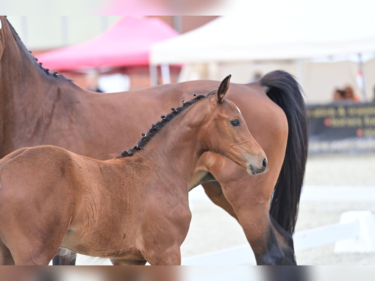 For sale is a promising, high-quality mare from a highly successful dam line, born on 25.03.24. Pedigree: Dia Corrado x Classe VDL x Lupicor This extremely elegant, typey and courageous mare brings a lot of movement quality and ability with remarkable jumping ability. A guarantee and hope for the big tour. In June of this year, she successfully took part in the foal championships and achieved 3rd place against a total of 60 foals with jumping ability and was also awarded a gold premium. Grades: Body: 3x the score 9.0 Movement: 3x the grade 8.5 Overall impression: 3x the grade 9.0 The dam was successful in jumping herself and is characterized by her absolute rideability and abnormal ability at the jump. She passes this on to her offspring through and through:... Her first daughter is internationally successful and placed up to 1.45m. Her 4-year-old son by Codex One is currently being broken in. I also own her 2-year-old black stallion by Cornet de Semilly and a yearling mare, also by Dia Corrado. Dia Corrado is highly successful on the international circuit with Maurice Tebbel and only recently placed in the 3* 1.45 Ranking show jumping competition at the MET in Oliva. We look forward to hearing from you if you are interested and for further information.