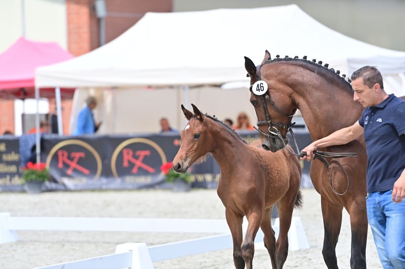 Na sprzedaż jest obiecująca klacz wysokiej jakości z bardzo udanej linii żeńskiej, urodzona 25.03.24. Rodowód: Dia Corrado x Classe VDL x Lupicor Ta niezwykle elegancka, typowa i odważna klacz wnosi wiele jakości ruchu i umiejętności z niezwykłymi zdolnościami skokowymi. Gwarancja i nadzieja na wielki tour. W czerwcu tego roku z powodzeniem wzięła udział w czempionacie źrebiąt i zajęła 3. miejsce na 60 źrebiąt z umiejętnościami skokowymi, a także otrzymała złotą premię. Klasy: Korpus: 3x ocena 9.0 Ruch: 3x ocena 8,5 Ogólne wrażenie: 3x ocena 9.0 Matka sama odnosiła sukcesy w skokach i charakteryzuje się absolutną jezdnością i nienormalną zdolnością do skoku. Przekazuje to swojemu potomstwu na wskroś:... Jej pierwsza córka odnosi międzynarodowe sukcesy i plasuje się na poziomie do 1,45 m. Jej 4-letni syn po Codex One jest obecnie w treningu. Posiadam również jej 2-letniego czarnego ogiera po Cornet de Semilly i roczną klacz, również po Dia Corrado. Dia Corrado odnosi sukcesy na arenie międzynarodowej z Maurice'em Tebbelem, a ostatnio zajęła miejsce w konkursie skoków przez przeszkody 3* 1.45 Ranking w MET w Olivie. Jeśli jesteś zainteresowany i chciałbyś uzyskać więcej informacji, skontaktuj się z nami.