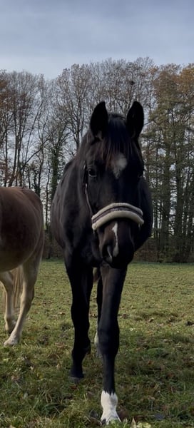 Se ofrece a la venta mi yegua de aproximadamente 2 años, criada para salto, de la raza Pferde de deporte alemana (Deutsches Sportpferd). Es hija del exitoso caballo de Gran Premio internacional Zinedream (por Zinedine), y proviene de una yegua de gran tamaño por Ogano (por Darco) x Quintender. Esta excelente línea de cría está estrechamente relacionada con el famoso semental de honor Zenegro y promete la más alta calidad tanto para la competición como para la cría. Destaca por su carácter amable, así como por su confianza y honestidad. Cuenta con tres excelentes conformaciones con mucho potencial. La joven yegua es muy curiosa, atenta y muestra una actitud abierta e interesada hacia las personas. Se nota rápidamente que le gusta establecer contacto y siempre se esfuerza por hacer las cosas bien. En el box ya se mantiene tranquila y obediente, y también en la herrería se muestra completamente tranquila y sin complicaciones. Actualmente, se trabaja con ella en pequeñas sesiones tranquilas desde el suelo, para que se familiarice con nuevas experiencias de manera relajada y sin presión. Con mucho pesar, debo cederla por motivos de salud. Por eso, busco un hogar amoroso para mi joven yegua, con personas que tengan corazón y paciencia, que disfruten criar a un caballo joven con calma y acompañarla paso a paso en su desarrollo. Datos destacados: Raza: Pferde de deporte alemana (DSP) Edad: prevista para junio de 2024 Altura final: se espera que sea de gran tamaño (madre 177 cm)