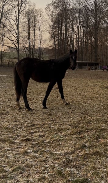 Zum Verkauf steht meine knapp 2-jährige, springgezogene Deutsche Sportpferde-Stute. Sie stammt ab vom international erfolgreichen Grand-Prix-Sieger Zinedream (v. Zinedine) aus einer großrahmigen Mutter von Ogano (v. Darco) x Quintender. Diese erstklassige Anpaarung ist eng verwandt mit dem bekannten Prämienhengst Zenegro und verspricht höchste Qualität für Sport und Zucht. Sie überzeugt mit einem lieben Wesen sowie einem selbstbewussten und ehrlichen Charakter. Sie überzeugt mit drei ansprechenden GGA mit viel Potenzial. Die junge Stute ist sehr neugierig, aufmerksam und zeigt sich Menschen gegenüber aufgeschlossen und interessiert. Man merkt schnell, dass sie gerne Kontakt aufnimmt und stets bemüht ist, alles richtig zu machen. Am Putzplatz steht sie bereits ruhig und brav, und auch beim Hufschmied zeigt sie sich absolut unkompliziert. Aktuell wird sie ihrem Alter entsprechend in kleinen, ruhigen Einheiten vom Boden aus beschäftigt, sodass sie ganz entspannt und ohne Druck an neue Eindrücke herangeführt wird. Schweren Herzens muss ich sie aus gesundheitlichen Gründen abgeben. Daher wünsche ich mir für meine junge Stute ein liebevolles Zuhause bei Menschen mit Herz und Geduld, die Freude daran haben, ein junges Pferd in Ruhe wachsen zu lassen und sie Schritt für Schritt auf ihrem weiteren Weg zu begleiten. Eckdaten: Rasse: Deutsches Sportpferd (DSP) Alter: 06.2024 Endmaß: Großrahmig zu erwarten (Mutter 177cm)