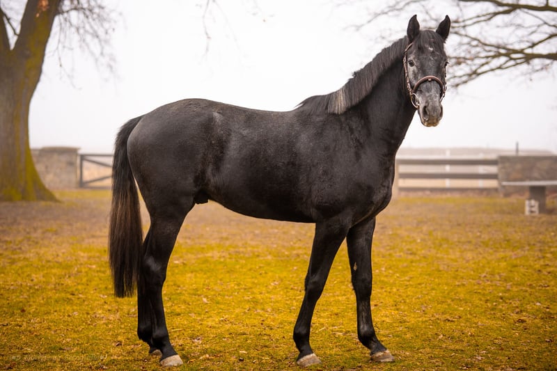 165 cm | Born 01/2023 Location: Landstein near Lahnstein Dam: Gala by Come and Fly For sale is an exceptionally charismatic gelding with an outstanding pedigree based on proven sport lines, making him an ideal candidate for someone aiming for a future in sport – show jumping 🥇. A modern type of horse, correctly built, moving naturally with balance and rhythm. Flexible, elastic trot, and a good, round, and balanced canter 🔝. Eager to jump and not "spooky" 🪽. ✅ Current training stage: in the process of breaking (has accepted the saddle, works on the lunge line effortlessly in all three gaits, and is starting to work under saddle). He has a very friendly temperament, loves human contact, and is the "clingy" type for cuddles or treats. He willingly offers his legs and is well-behaved during grooming 🧽. Cooperative and quick to learn. Never injured, no illnesses, kept on pastures and raised in a herd of peers. Sold directly from the breeder ❗️ Regularly backed, dewormed, and vaccinated 💉✅. The horse is still growing and is expected to reach approximately 16.1 hh in the future. Suitable for an ambitious junior rider under trainer supervision or a rider looking for a future sport horse 🤩. €6,300 negotiable for serious buyers! 📍 Strzegom, Lower Silesia For more information and videos, please contact: 📞 605 767 399