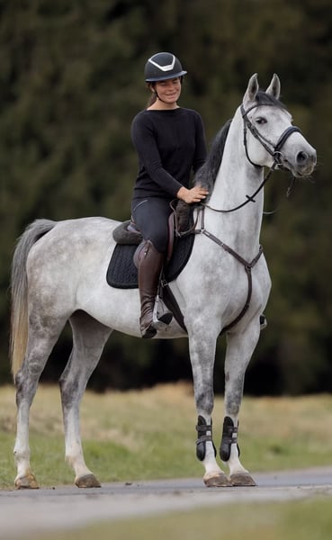 Classy Girl Cavalla tedesca di 4 anni con pedigree di alto livello – Casillas x Cosmopolitan Classy Girl è una splendida giovane cavalla con una genealogia eccellente e le migliori qualità per il salto ostacoli. È stata appena iniziata alla monta e già si distingue per la sua ottima maneggevolezza, il entusiasmo nell’apprendimento e un carattere meraviglioso. Desidera sempre piacere al suo cavaliere, impara incredibilmente in fretta e rende ogni passeggiata un vero piacere. È un vero piacere cavalcarla – molto delicata in bocca, già stabile al guinzaglio e sempre motivata, concentrata e incredibilmente tranquilla! Dopo solo un giorno ha capito il cambio di galoppo volato e lo esegue con sicurezza su entrambe le mani. Anche durante il riscaldamento si mostra molto promettente, sempre desiderosa di cambiare lato e con molta visione di campo. Già affronta con sicurezza piccoli percorsi di salto. Anche in campagna ha affrontato il suo primo uscito con grande successo – da sola, senza accompagnamento. Né trattori né mucche sono riusciti a impressionarla – rimane calma e impavida in ogni situazione. Classy Girl è un vero diamante grezzo che, con il cavaliere giusto, può diventare una star. Possiede molta potenza e ambizione, e ha tutto ciò che serve a un futuro cavallo da gara di successo. Con la sua taglia compatta, la leggerezza e il carattere equilibrato, si muoverà sicuramente con agilità e rapidità attraverso il percorso. Prova di monta possibile in qualsiasi momento. 30 € Per richieste, si prega di contattare esclusivamente telefonicamente o via WhatsApp: 📞 +43 680 50 11366