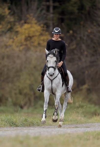 Classy Girl A 4-year-old German mare with excellent lineage – Casillas x Cosmopolitan Classy Girl is a stunning young mare with outstanding bloodlines and top potential for show jumping. She has just been backed and already impresses with her good rideability, eagerness to learn, and a wonderful temperament. She always aims to please her rider, learns incredibly quickly, and is simply a joy to ride. It is a real pleasure to sit on her – very soft in the mouth, already consistently on the bit, and always motivated, focused, and exceptionally well-behaved! Within just one day, she understood flying changes and performs them confidently on both sides. She also shows her best at the in-hand warm-up, always eager to move to the other side and possesses great awareness. She already handles small courses confidently. In the arena, she mastered her first outing with flying colors – all alone, without any company. Neither tractors nor cows could ruffle her; she remains calm and fearless in every situation. Classy Girl is a real diamond in the rough, with the potential to become a superstar with the right rider. She possesses a lot of talent and ambition and has everything needed for a future top-performing show jumper. Thanks to her manageable size, light-footedness, and balanced nature, she will surely move swiftly and nimbly through the course. Trial rides available at any time. €30 Inquiries exclusively by phone or WhatsApp: 📞 +43 680 50 11366