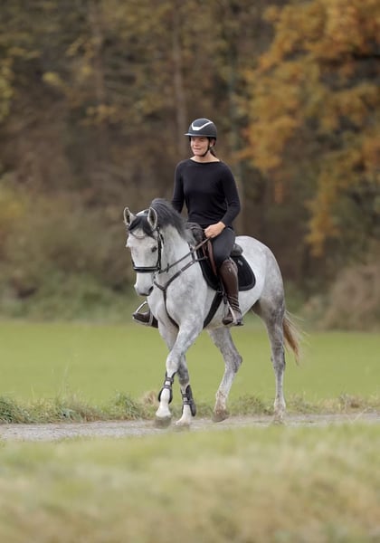 Classy Girl 4 jährige deutsche Stute mit Top-Abstammung – Casillas x Cosmopolitan Classy Girl ist eine bildschöne, junge Stute mit hervorragender Abstammung und besten Anlagen für den Springsport. Sie ist gerade angeritten und überzeugt schon jetzt mit toller Rittigkeit, Lernfreude und einem traumhaften Charakter. Sie möchte ihrem Reiter immer gefallen, lernt unglaublich schnell und macht einfach nur Spaß. Es ist ein echtes Vergnügen, sie zu reiten – sehr fein im Maul, steht schon jetzt konstant am Zügel und zeigt sich stets motiviert, konzentriert und abnormal brav! Bereits nach einem Tag hat sie den fliegenden Galoppwechsel verstanden und springt ihn sicher auf beiden Seiten. Auch beim Einspringen zeigt sie sich von ihrer besten Seite will immer auf die andere Seite und hat viel Übersicht. Kleine Parcours absolviert sie bereits souverän. Auch im Gelände hat sie ihren ersten Ausritt mit Bravour gemeistert – ganz alleine, ohne Begleitung. Weder Traktoren noch Kühe konnten sie beeindrucken – sie bleibt cool und unerschrocken in jeder Situation. Classy Girl ist ein echter Rohdiamant, der mit dem richtigen Reiter zum Superstar werden kann. Sie bringt viel Vermögen und Ehrgeiz mit und hat alles, was ein zukünftiges Siegerpferd im Parcours braucht. Mit ihrer handlichen Größe, ihrer Leichtfüßigkeit und ihrem ausgeglichenen Wesen wird sie sicher einmal flink und wendig durch den Parcours gehen. Probereiten jederzeit möglich. 30€ Anfragen bitte ausschließlich telefonisch oder per WhatsApp: 📞 +43 680 50 11366
