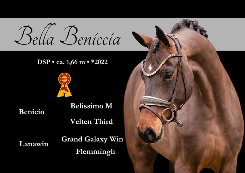 Dear Interested Parties, For appointment bookings and test rides, please send me a WhatsApp message. During the day, I am available via WhatsApp for further questions; the best time to reach me by phone is between 4 and 7 p.m. I look forward to hearing from you. www.angelina-devittorio.de ⭐️Bella Beniccia⭐️ Age: 4 years (2022) Height: approximately 16.1 hh Pedigree: Benicio x Flemmingh Training level: Dressage horse level Health: Good X-ray results available For sale is a beautiful daughter of Benicio out of a Flemmingh mare. This highly talented young horse impresses with three outstanding basic gaits: an impressive uphill canter, an elastic trot with active hind legs, and a very good quality walk. It is perfectly suited as a training horse with excellent potential for the grand prix ring. She comes directly from the breeder and is now well-started under saddle. Already well-balanced and suitable for amateurs, of course, some young horse experience is required due to her age. A remarkable young horse is growing here, with the potential to shine at the highest level. ⚜️ Phone: 0171-3438949 ⚜️ a.devittorio@web.de ⚜️ https://www.ehorses.de/angelinadevittorio Facebook and Instagram: Angelina De Vittorio