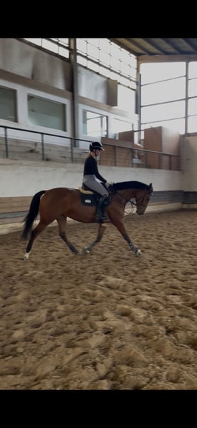 Zum verkauf steht meine 4 jährige Stute Candy. Sie ist von uns selbst gezogen und ausgebildet. Sie ist für Ihr alter schon sehr abgeklärt. Sie beherrscht unterm Reiter alle 3 Gangarten und ist unterm Reiter gesprungen. Da Sie generell ziemlich unkompliziert ist sowohl im Umgang als auch beim reiten und springen kann ich mir sie in der Zukunft auch gut als Hunter vorstellen. Sie geht alleine aber auch als Gruppe problemlos ins Gelände. Ist verlade und schmiedefromm. Hat noch keinerlei schlechte Erfahrungen gemacht und wurde mit viel Zeit und Ruhe schonend angeritten. Bei weiteren Videos oder Fragen gern melden.