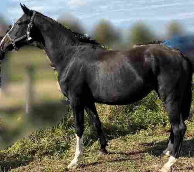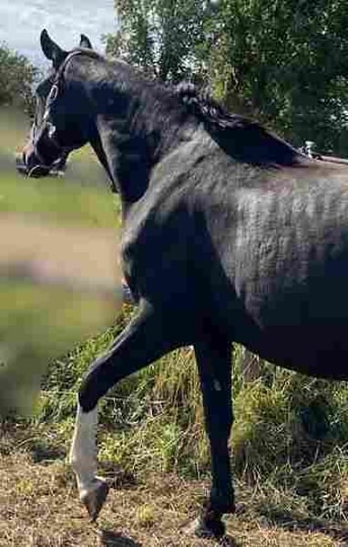 For sale is an impressive German sport horse mare, born in 2022. This elegant black mare impresses with her excellent pedigree and very promising basic gaits. Renata is a striking and characterful daughter of the Dutch top sire Jameson RS 2, both in appearance and movement. She is well-mannered and highly trainable. Within the herd, she holds a relatively high rank. At around 10 months of age, the mare slipped on ice and sustained a muscle tear in one of her hind limbs. As a result, she exhibits a slightly upright stance in her hind legs. Currently, she shows no movement restrictions in any of the three gaits. A spacious, active environment is beneficial for this horse. THE PRICE LISTED IS A MINIMUM BID! The offered horse is available for sale due to a governmental confiscation. An equine passport is available. If a pre-purchase examination is desired, it can be arranged and carried out at the buyer’s expense. After acquiring the horse, transportation is to be organized and paid for by the buyer. The horse is sold without warranty. The seller makes no guarantees regarding specific qualities or uses. Interested parties are asked to submit a written bid including their name, address, and location of stabling. After receiving a bid, the veterinary authority will contact the prospective buyer. The sale will be awarded to the highest bid, subject to approval of the future stabling conditions. veterinaeramt@lkee.de PLEASE NOTE THAT ONLY WRITTEN BIDS INCLUDING THE BID AMOUNT, NAME, AND RESIDENCE WILL BE CONSIDERED! After reviewing the bids, the authority will contact the interested buyer to arrange a viewing appointment.