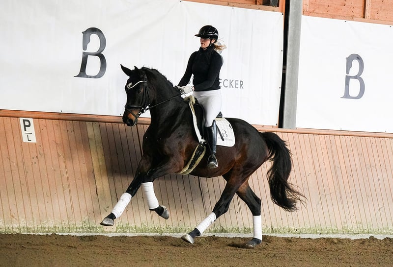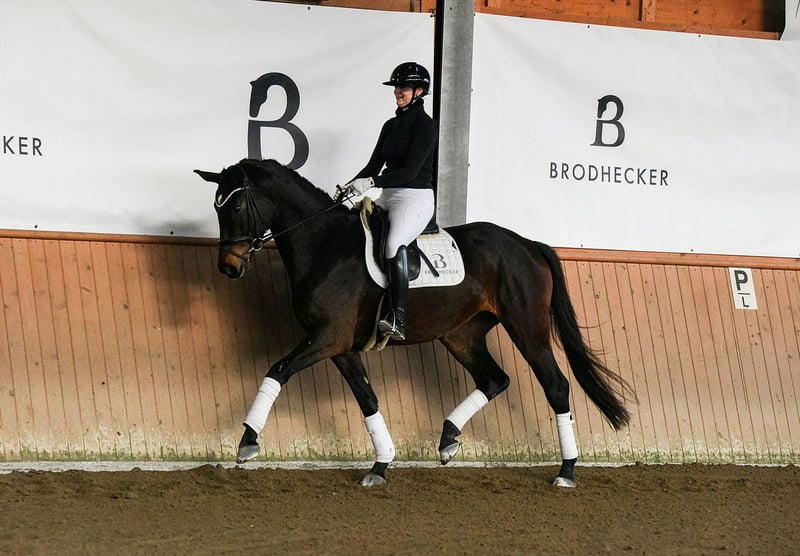 BURGHOF EASTER SALES vom 30.03. bis 06.04.2026 In der Kollektion: 35 Dressur-, Spring- und Freizeitpferde Alle Infos unter: https://brodhecker-burghof.de/burghof-easter-sales-2026/ Die bildhübsche DSP-Stute Fleur d’Amour überzeugt mit drei außergewöhnlichen Grundgangarten, einer tollen Rittigkeit und dem gewünschten Go. Durch ihren enormen Ehrgeiz und ihre hervorragende Arbeitsmoral ist der Weg in den gehobenen Dressursport bei entsprechender Förderung vorgezeichnet. Fleur d’Amour stammt aus eigener Zucht. Ihr Vater Fair Deal war Seriensieger in Jungpferdeprüfungen und Moritzburger Jungpferdechampion. Er führt das begehrte Blut des Elitehengstes Franklin – seines Zeichens Körungssieger und später erfolgreich bis Grand Prix. Mutter Denicia ist aktuell siegreich in Dressurpferdeprüfungen der Kl. L. Muttervater DSP De Sandro ist 4-facher DSP-Champion und erfolgreich in der Schweren Klasse. Bei Interesse an unseren Verkaufspferden, kontaktieren Sie uns gerne telefonisch oder per WhatsApp: Springpferde - Tel. (+49)159/06026914 (Johannes Brodhecker) Dressurpferde - Tel. (+49)172/8733686 (Volker Brodhecker)