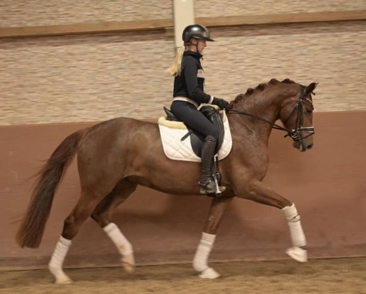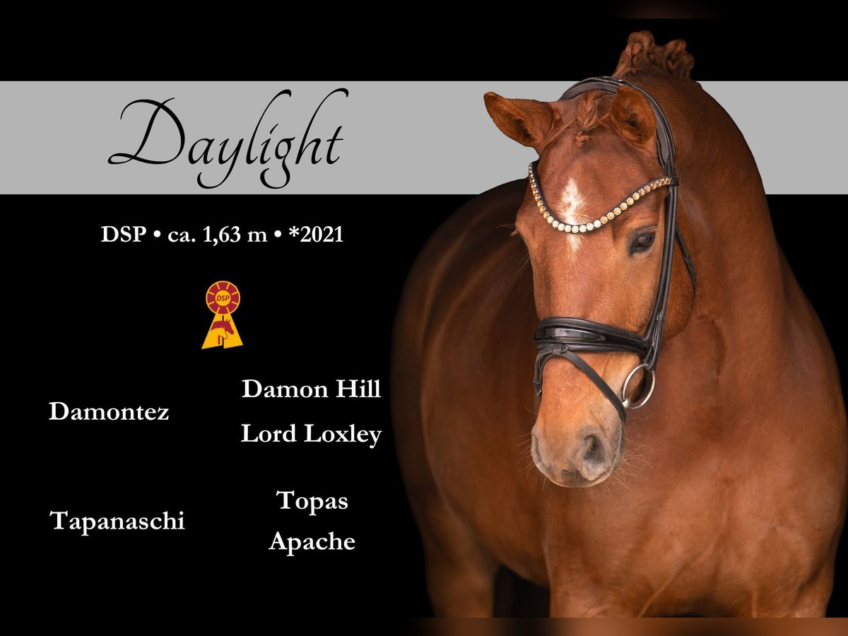 Liebe Interessenten, Für Terminvereinbarungen Probereiten senden Sie mir bitte eine WhatsApp. Für weitere Fragen bin ich tagsüber per WhatsApp erreichbar, telefonisch erreichen Sie mich am Besten zwischen 16 und 19 Uhr. Ich freue mich auf eine Kontaktaufnahme www.angelina-devittorio.de ⭐️Daylight⭐️ Alter: 5 Jahre (2021) Größe:ca 1,64 m Abstammung: Damontez x Topas Ausbildungsstand: angeritten AKU: Gute Röntgenbilder vorhanden Zum Verkauf steht eine wunderschöne Tochter des Damontez aus einer Topas Mutter. Dieses hochveranlagte Nachwuchspferd überzeugt mit drei sehr guten Grundgangarten: einer guten, bergauf gesprungenen Galoppade, einer elastischen Trabmechanik mit aktivem Hinterbein sowie einem Schritt von sehr guter Qualität. Sie eignet sich perfekt als Ausbildungspferd mit exzellenter Perspektive ! Sie ist direkt vom Züchter und ist nun gut angeritten . Aufgrund Zeitmangel noch nicht weit gefördert, daher wird diese traumhafte Stute weit unter Wert verkauft. Schon gut ausbalanciert und amateurtauglich , natürlich ist gewisse Jungpferdeerfahrung Voraussetzung aufgrund des Alter . Hier wächst ein außergewöhnliches Nachwuchspferd heran, das täglich zu überzeugen weiß . Sehr lieb im Umgang und Menschenbezogen. ⚜️Tel: 0171-3438949 ⚜️a.devittorio@web.de ⚜️https://www.ehorses.de/angelinadevittorio Facebook und Instagram Angelina De Vittorio
