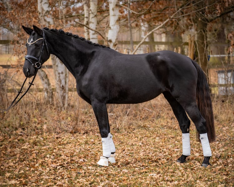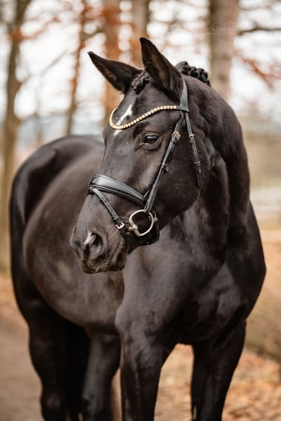 For sale is the promising mare Chiara della Luna SCH, a German sport horse with a solid foundation, a pleasant temperament, and excellent prospects for a successful future in competitive riding. Details: • Name: Chiara della Luna SCH • Breed: German Sport Horse • Gender: Mare • Height: approximately 16.1 hh • Training level: Lunged, riding horse level • Temperament: Well-behaved, well-mannered, farrier- and loading-trainable, human-oriented Chiara della Luna SCH consistently demonstrates a friendly and approachable demeanor in daily handling. She loves being groomed and brushed, enjoys all forms of attention, and quickly develops a trusting bond with her handler. She is completely uncomplicated when it comes to farrier work and loading. Important to note: Chiara does not like to be saddled in her box – she prefers clear routines outside the stable and remains relaxed in that environment. Stall preferences: Chiara thrives in box stall housing with daily turnout. She prefers to have her paddock or turnout alone, where she can relax and unwind best. Under saddle, she presents as sensitive, eager to learn, and shows a good work attitude. Due to her young age and training level, she requires a gentle, fair, and consistent rider who can nurture her development carefully. She is not suitable for beginners but offers great potential for ambitious riders who enjoy responsibly training a young horse. Her talent for free jumping is particularly noteworthy — she displays awareness, technique, and ability. Given this potential, she could also excel in show jumping courses or eventing. Chiara della Luna SCH achieved an excellent 4th place among 2-year-old mares at the PZG Mare Show in Mammendorf in 2023, earning a score of 8.2 — a strong testament to her quality and potential. An ideal horse for riders with sensitivity, patience, and a clear plan. For further information or to arrange a viewing, please contact us by message or phone. Trial riding possible by arrangement.