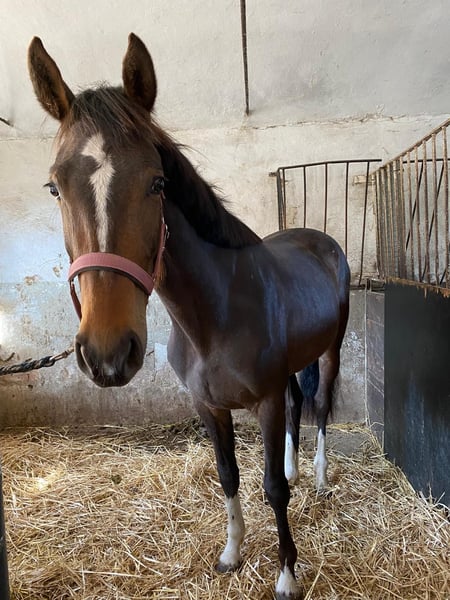 Zum Verkauf steht eine 5 jährige, braune Stute von Zinedine aus einer Baloubrie-Mutter. Sie wurde schonend angeritten und danach weiter gefördert. Sie wird wegen Bestandsverkleinerung abgegeben. Bei ernsthaftem Interesse zu erreichen unter: +49 1727967019