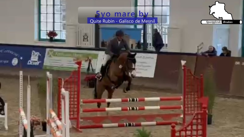 Wir bieten hier eine 5jährige Stute mit Potenzial, die bereits auf ihren ersten Turnierauftritten platziert war. Mit ausreichend Blut und charakterstark zeigt sie sich in der Arbeit. Am Sprung präsentiert sie sich mit viel Abdruck, leichtfüßig und sehr vorsichtig bei gutem Springvermögen. Genetisch ist sie ebenfalls interessant, da sie aus einem absolutem Leistungsstamm gezogen wurde bei leistungsorientierter springbetonter Abstammung.