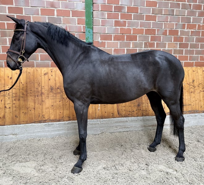 Inquiries please exclusively via phone or WhatsApp at +49 1511 7665701. A 5-year-old mare by Singlord Joker out of Quidams Rubin. She stands at 16.1 hh and has already achieved multiple high placings. She has been placed in 7/8 rounds of Jumping Horse Class A. She is very cautious at the jump but has a pleasant go. She easily performs flying changes and is easy to ride in dressage. Competition name: Savage 13. A current, good veterinary certificate from July of this year is available.