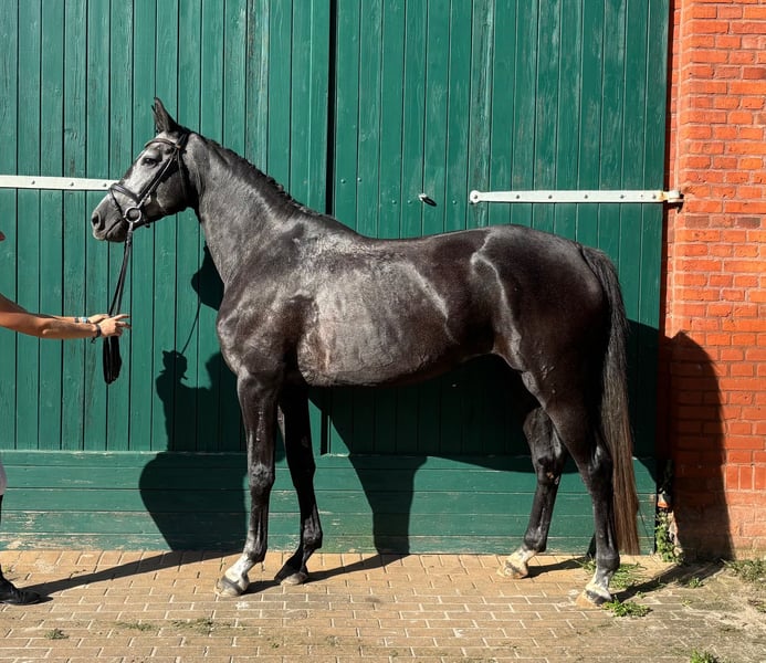**Sales Advertisement: German Sport Horse - Black Grey Mare** For sale is a talented black grey mare, born in 2021. With a height of 172 cm, she is an impressive presence and is excellently suited for dressage sports. She completed her mare performance test in May 2025, receiving a score of 8.5 for rideability and a 9 for interior quality. This mare captivates not only with her elegant appearance but also with her outstanding movements and character. She is well-behaved and has a friendly disposition, making her an ideal partner for the ambitious dressage rider. If you are interested or have further questions, please feel free to contact me. Visit us and see for yourself this wonderful horse!