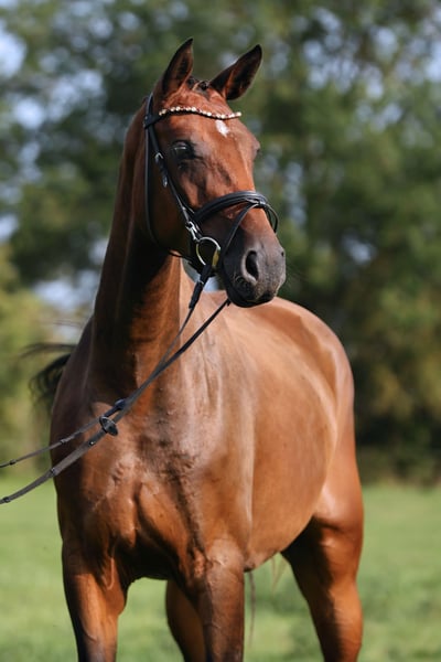 Large-framed, double-bred mare with three above-average gaits, born in 2021 by Bela Bartok (Belantis) x Casskeni II (Cassini II) is looking for a new carrot provider. Cascada offers a wonderful riding experience and was able to impress the judges at her very good mare performance test: Trot 8.0, Walk 8.0, Canter 7.5, Rideability/Foreign Rider 8.0, Jumping 8.0. She is comfortable to sit on and moves well through her body. With an experienced rider, she goes out alone in all three gaits into the terrain - even at dusk. She is familiar with trailer loading (and gets in), off-site training, and free jumping. Due to her height of 174 cm, she is still in development and needs a sensitive rider. Jumping under saddle has been started gently. Also interesting for eventing. The mare is of course regularly vaccinated, dewormed, and has been presented to the farrier/dentist. X-rays are available. If you are interested or have further questions, we are happy to assist you. Visit us and see for yourself this wonderful horse!