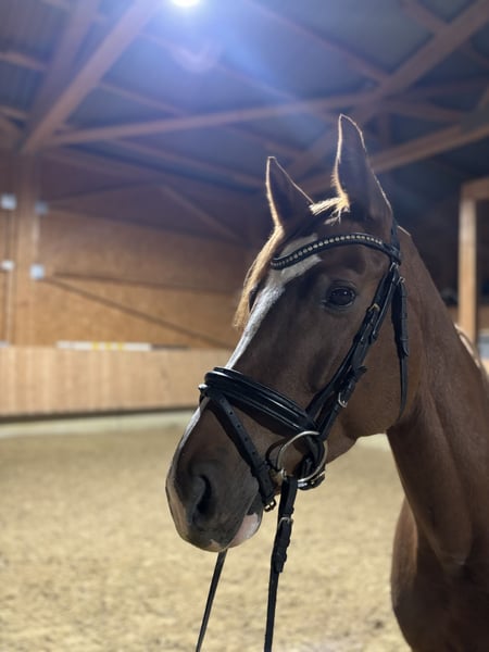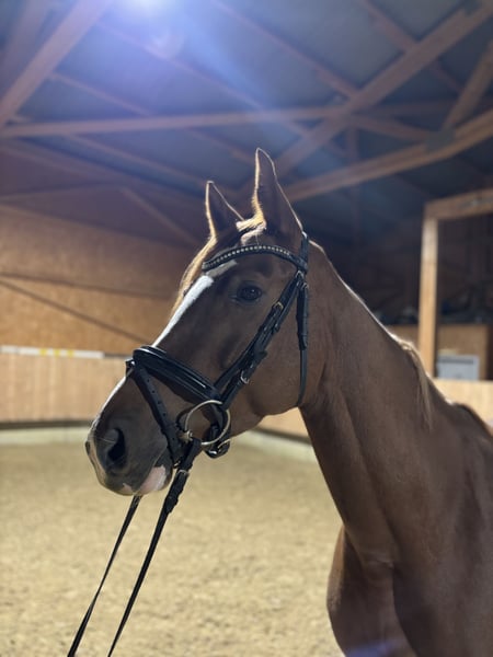 Gesucht wird ein neues Zuhause für eine wunderschöne Fuchsstute mit bester Springabstammung mit einem Befund!! Gwendolina hatte eine 5* Aufzucht und wurde schonend angeritten. Sie ist aufgrund ihres starken Charakters absolut kein Anfängerpferd und benötigt eine/n routinierte/n Reiter/in Sie hat einen Befund in der Hufrolle, weshalb sie auch deutlich unter Preis verkauft wird. In der bisherigen Ausbildung machte dieser Befund allerdings keinerlei Probleme. Ansonsten ist sie komplett durchgecheckt und ist auch in der Untersuchung dokumentiert. Bitte nur konkrete Anfragen. Für ein Vor und probereiten behalten wir uns eine Gebühr in Höhe von 40€ vor, welche bei erfolgreicher Vermittlung selbstverständlich verrechnet wird.