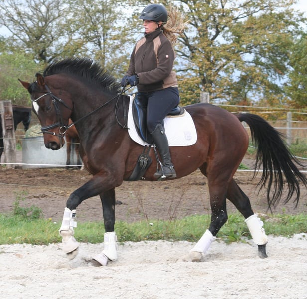 Cette jeune jument impressionne par ses mouvements exceptionnels et son tempérament équilibré. Elle convient aussi bien à un amateur ambitieux qu’à un cavalier professionnel. La jument a déjà acquis ses premières expériences en terrain varié et en parcours, et montre un grand potentiel en concours complet et en saut d’obstacles. Elle est docile en main, bien éduquée et possède un caractère amical. Elle a obtenu de nombreux classements en épreuves d’aptitude, en concours de saut d’obstacles et en cross, ainsi qu’en épreuves combinées. En 2025, elle a été couronnée championne de cross chez les chevaux de 5 ans de Brandebourg-Anhalt. Elle est très sûre au saut ! Elle saute également avec un cavalier moins expérimenté, ce qui en fait également une candidate idéale pour des cavaliers juniors. Aucune mauvaise habitude, vidéos disponibles sur demande. Des radiographies récentes sont à disposition. Pour toute question ou information complémentaire, je reste à votre disposition. Les visites peuvent être organisées sur rendez-vous. En raison du tourisme équestre, une participation de 20 euros sera demandée pour la séance d’essai, qui sera déduite en cas d’achat.