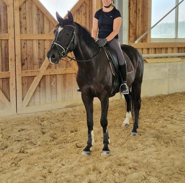 Unsere Lady ZacK ist eine elegante und sehr rittige Rappstute, herrlich zu reiten und sehr sitzbequem! Mit leichtfüßigen Bewegungen und elegantem Auftreten verfügt sie über 3 sehr gute GGA. Sie ist mit feinem Go ausgestattet und zeigt sich in der täglichen Arbeit nervenstark, ob im Umgang oder unter dem Sattel, ein wahrer Schatz. Im letzten Jahr hat sie eine sehr gute Leistungsprüfung mit 8,2 abgelegt und war unter den Dressurpferden somit das beste bewertete Pferd. Ihre Vollschwester Lady Sunshine war Vize-Landeschampionesse von Bayern und auch qualifiziert fürs Bundeschampionat. Evlt. auch für die Zucht sehr interessant, da die Stute aus dem sehr guten Love Story Stamm hervorgeht und es viele sehr gute Nachkommen gibt wie z.B. Floppy Disc, Faccia, Love Girl, Blue Hors Zee me Blue uvm. Die Mutter Lady Kelly war selbst Siegerstute und hat mit ihren Sohn Zick Zack und Lady Sunshine schon sehr gute Nachkommen hervorgebracht!