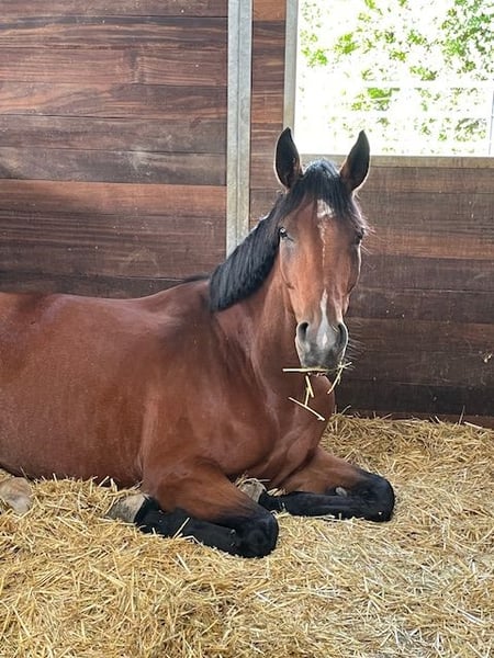 Deze expressieve Topas merrie zoekt een nieuw thuis waarin ze kan schitteren. "Lizzy" is sinds december 2024 in ons bezit en is in de zomer voorzichtig op A-niveau opgeleid. Er zijn al enkele L-niveau lessen gestart. Lizzy kent cavaletti- en balkwerk, en loopt moedig voorop in het terrein. Vanwege tijdgebrek hebben we haar dit jaar niet op concours uitgebracht, maar ze is wel ingeschreven bij de FN en kan meteen starten. Tijdens buitenritten toonde ze zich altijd zeer ontspannen en onbevreesd. Ze is ingeschreven in het stamboek van de Baden-Württembergse paardensportbond. Ze heeft een zeer aangenaam karakter en wil haar mens altijd gefallen. Ze houdt ervan om gepoetst en geknuffeld te worden. Bij ons staat Lizzy overdag op de paddock of wei in een kleine merriegroep en ’s nachts in haar eigen box. We zoeken een thuis waar ze gestimuleerd wordt en de volle aandacht van haar eigenaar krijgt. Lizzy is volledig gevaccineerd, is altijd regelmatig ontwormd (selectief) en rijdt heel braaf in de trailer. Goede röntgenfoto’s zijn aanwezig. Vanwege haar grootte en leeftijd is ze (nog) niet geschikt voor kinderen, ook beginners en herintreders alleen met ondersteuning van een instructeur of groom. Voor een kennismaking en proefrit wordt een vergoeding van 25 euro direct contant betaald.