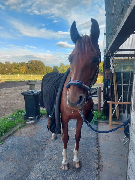 Wenn alles passt, suche ich für meine 8Jährige Stute, 155cm, kein Gewichtsträger, ein neues zu Hause. Leider bringt sie gesundheitliche Handicaps mit, wenn diese gut gemanaget sind hat man hier eine nette Partnerin für das Gelände oder auch geführte Therapie. Eingeschränkt ist sie durch leichtes Asthma, dass mit der richtigen Fütterung und Bewegung gut im Griff zu halten ist. In akuten Phasen sollte man dennoch Medikamentös unterstützen. Mit 2,5Jahren hatte sie Medikamenten Rehe, daher lasse ich sie behutsam Angrasen. Ein Test auf Insulinresitenz wurde zu der Zeit gemacht, dieser war negativ. Sie neigt zu Verstopfungskoliken, daher ist eine reine Boxenhaltung nicht ratsam. Seit der Umstellung in eine kleine Offenstallgruppe hat sie damit keine Probleme mehr. Zur Zeit lebt sie mit meinen beiden anderen Pferden im Offenstall, es wird seit neustem Heulage gefüttert, im Spätensommer lasse ich den Zugang zur Koppel 24/7 offen und das funktioniert gut. Vicky hatte leider einen Unfall und hatte die Schulter verletzt dies ist operiert worden und ausgeheilt. Daher ist sie aber nicht mehr für den Sport tauglich. Sie steigt und bockt nicht, blockiert dennoch hin und wieder. Wenn man mit ihr umzugehen weiß und alles gut eingestellt ist, hat man hier ein Pferd mit dem man viel Spaß haben kann. Ich reite sie alleine oder in der Gruppe ins Gelände. Reite auf dem Platz und in der Halle, kleine Kreuze springe ich auch hin und wieder, fahre mit ihr zum Ausreiten weg oder auch zu Trainings. Meine 15Jährige Reitbeteiligung ist mit ihr im Gelände unterwegs. Ich möchte so transparent wie möglich sein, das Pferd liegt mir sehr am Herzen. Und erwarte dies auch von den Interressenten. Es gilt Platz vor Preis Bei Interesse gerne telefonisch oder per WhatsApp melden. 01718234755