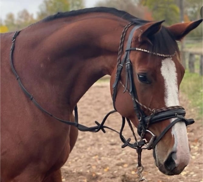Met pijn in het hart moet ik afscheid nemen van mijn merrie. Ze wil altijd gefallen, werkt geweldig mee, heeft behoefte aan veel beweging en beschikt over prachtige gangen en een geweldige sprong. Toch heeft ze een ruiter nodig die haar vertrouwen geeft en haar goed kan lezen, want als iemand onzeker op haar zit of iets niet klopt, toont ze dat soms door te bokken. Ze test graag grenzen uit, maar zodra ze merkt dat de ruiter zich niet laat beïnvloeden, is ze weer volledig geconcentreerd en werkt ze uitstekend mee. Helaas ben ik niet in staat haar karakter te hanteren, daarom wil ik haar graag herplaatsen. Op de lange termijn staat ze bij mij simpelweg te veel stil; ze heeft regelmatige beweging en werk nodig. Ze is aangezadeld (rijdbaar in alle gangen, aanleuning, schouderbinnenwaarts…), kent de basisdressuur, is in het terrein gereden, gaat als handpaard, en wordt zeer netjes en vlot op de hoefsmid en bij de dierenarts behandeld. Er is een uitgebreide keuring inclusief röntgenfoto’s aanwezig, haar tanden zijn recent verzorgd, ze krijgt regelmatig osteopathische behandeling, wordt regelmatig voorgesteld aan de hoefsmid en is recent ontwormd. Rijvideo’s zijn beschikbaar en worden bij interesse toegestuurd!