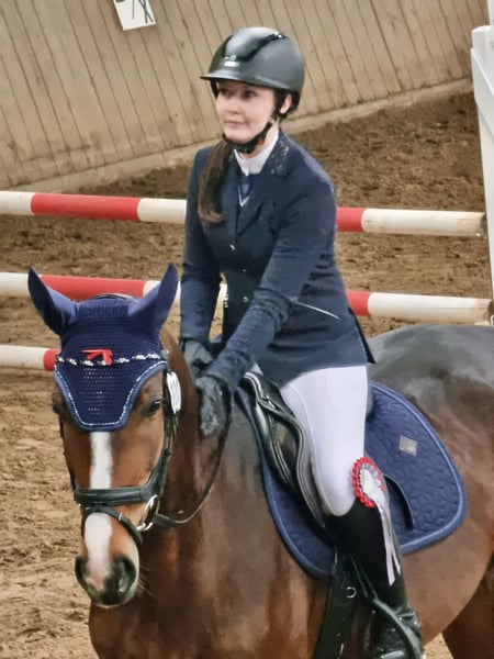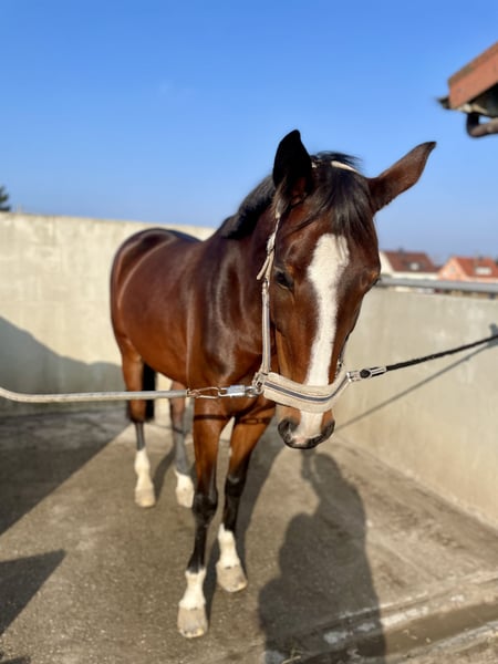 Montana überzeugt in der Arbeit durch Rittigkeit, Motivation und Engagement. Sie möchte ihrem Reiter immer gefallen, ist leicht in der Hand und macht Spaß. Sie bringt eine toll zu sitzende, elastische Galoppade und ein super Reitgefühl mit. Im Parcours verfügt sie über genügend Go, ohne heiß zu werden. Sie kennt zuverlässig ihren Job und ist am Sprung nicht guckig. Ich könnte sie mir auch sehr gut im Hunterbereich vorstellen. Durch ihre Grundqualität, gute Grundgangarten und Rittigkeit eignet sie sich als moderner, sportlicher Typ ebenfalls fürs Viereck. Auch als gehobenes Freizeitpferd einsetzbar. Im täglichen Umgang ist sie brav, zudem schmiede- und verladefromm. Sie ist regelmäßig geimpft, entwurmt und in osteopathischer Betreuung. Die Zähne wurden 2025 gemacht. Erfolge: • Springpferde A mit Noten bis 7,8 (2. Platz) • Stilspringen gewonnen mit 8,1 • Springpferde L gelaufen • Aufgrund Babypause in 2024 nicht und in 2025 wenig von mir vorgestellt, unverbraucht! Probereiten ist nach Absprache jederzeit möglich. Transport kann auf Wunsch übernommen werden.