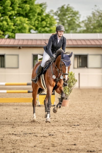 Montana si distingue nel lavoro per la sua facilità di monta, motivazione e impegno. Desidera sempre piacere al suo cavaliere, è leggera in mano e divertente da cavalcare. Possiede un trotto elastico e ben seduto, oltre a una sensazione di guida eccellente. In campo jumping ha sufficiente carattere senza diventare nervosa. Conosce affidabilmente il suo lavoro e non si spaventa ai salti. Potrei immaginarla molto bene anche nel settore hunter. Grazie alla sua qualità di base, alle buone andature e alla facilità di monta, si adatta anche come cavallo sportivo moderno per il salto ostacoli. Può essere impiegata anche come cavallo da tempo libero di alto livello. Nel quotidiano si comporta bene, ed è anche affidabile alla stalla e al carico. È regolarmente vaccinata, dewormata e sotto cura osteopatica. I denti sono stati trattati nel 2025. Risultati: • Cavallo da salto A con voti fino a 7,8 (2° posto) • Vincitore di una prova di stile con 8,1 • Ha corso in categoria cavalli da salto L • A causa della pausa per maternità nel 2024 non è stata presentata e nel 2025 poco, quindi ancora tutta da sfruttare! La prova di monta è possibile in qualsiasi momento previo accordo. Il trasporto può essere organizzato su richiesta.