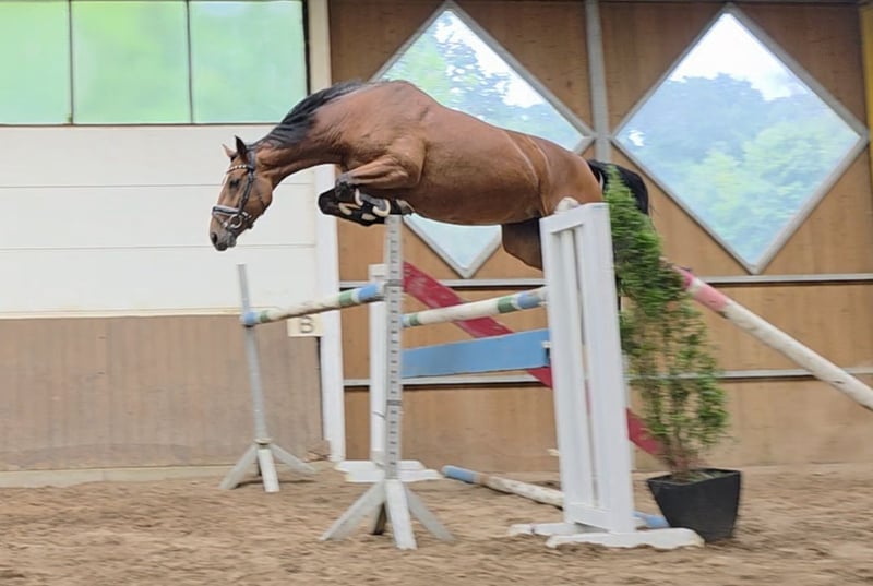 Talented mare with top pedigree – Vivant van de Heffinck x Balou du Rouet This stunning mare impresses not only with her type and correct conformation but especially with her remarkable jumping ability and outstanding lineage: Vivant van de Heffinck – internationally successful and renowned for rideability, talent, and attitude – combines here with the proven Balou du Rouet, known for performance, technique, and sportiness. Vicky demonstrates elastic movements with plenty of suppleness, power, and reflexes at the jump. Initially used in breeding, she was gently backed by a young rider and prepared for her career as a show jumper. She has since competed successfully in two Clear Round Jumping classes (Class A), jumping clear on her first attempts. Vicky is well-schooled in the basic gaits, completes a course under saddle, and approaches cross-country terrain confidently and fearlessly. She is even capable of riding alone. Under the rider, she is very rideable, motivated, and eager to perform, possessing all the qualities for a successful future in higher-level show jumping. She is equally suitable for ambitious amateurs as well as professionals and is a true athlete with great potential. I could also imagine her in eventing or with sensitive, discerning leisure riders. In handling, Vicky is a sweetheart and gets along well with other horses. However, she is not a beginner's horse yet, as she is still at the beginning of her career and requires a rider with finesse. Late in her sporting development but with high quality and attitude. Unexploited & on the right path. 8-year-old DSP mare, by Vivant van de Heffinck x Balou du Rouet, 16.1 hh, clinical exam and X-rays available Videos: https://youtu.be/USl9CVmDOOU?si=_WvixhKh1hm6ZjBK https://youtu.be/iRFBCLImq7c?si=QInDE5jKOrn7dNDX https://youtu.be/OcrIE6DYJAE?si=ka89kY2ilQFRszqT More photos, videos, and insights into our daily horse life are available on Instagram: [maresi_lange]. Feel free to visit and get to know our four-legged friends in advance. You can find additional photos, videos, and small glimpses into our horses’ daily routines on my website MaresiLange.de or upon request. Please note that the horse’s description is based on subjective impressions and experiences and does not constitute a guarantee of qualities or characteristics. Trial riding is at the buyer’s own risk. The sale is carried out on behalf of the owner. For viewing or trial riding, we reserve the right to charge a fee of 30 euros, which will be deducted from the purchase price if the horse is sold.
