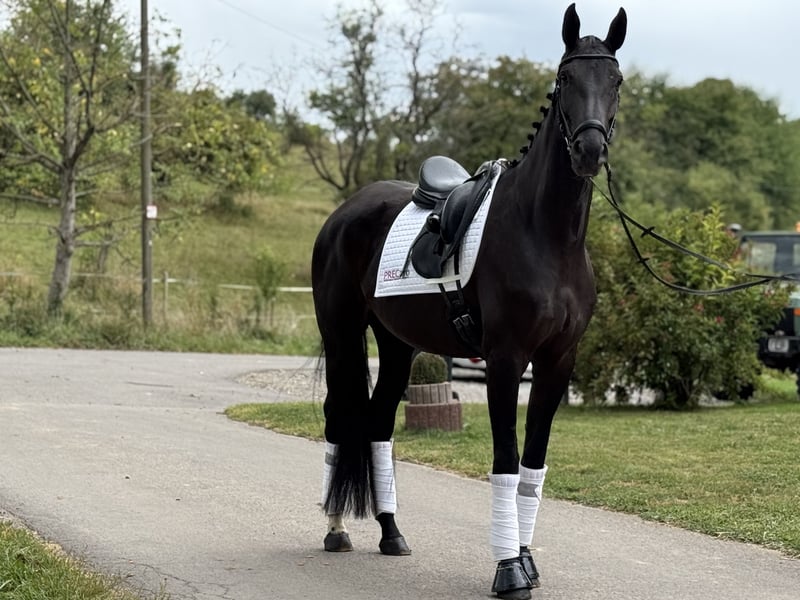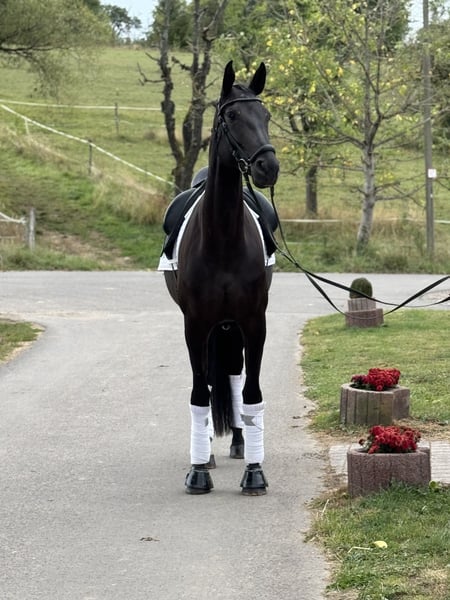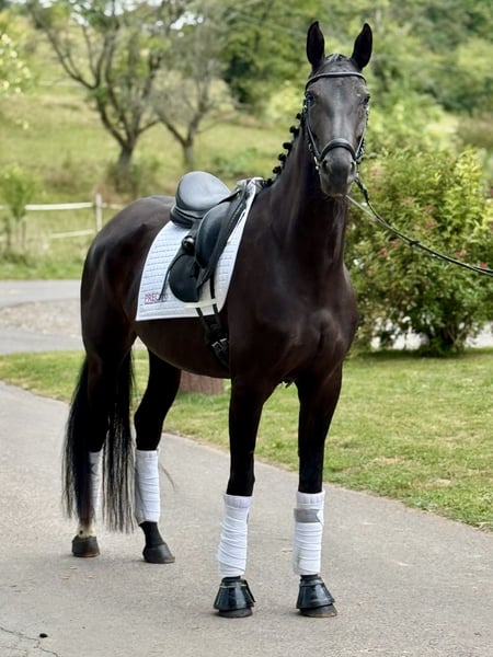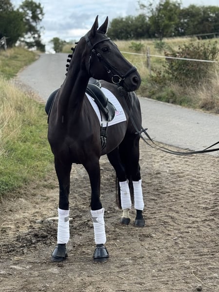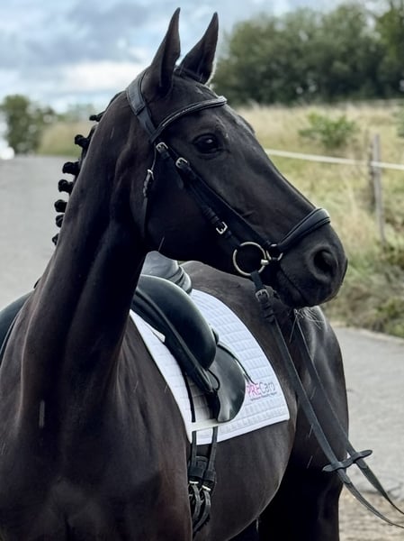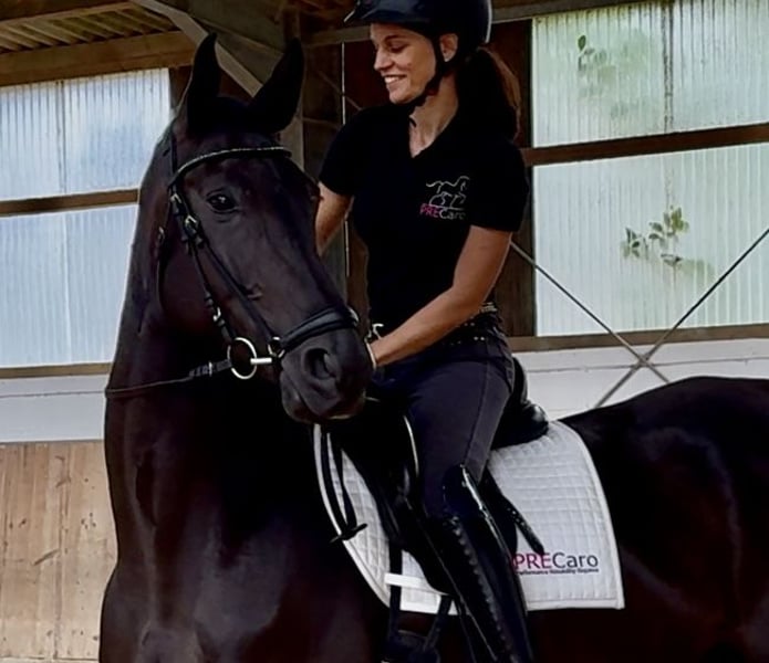 This highly elegant 7-year-old mare, with an excellent pedigree, combines a lot of quality with the best character traits. She has three very good basic gaits and also shows great rideability; she is competition-ready and can be used immediately in class A, already mastering some higher movements. Prospectively, this wonderful mare has everything it takes for the big dressage arena! Due to her particularly sweet nature and her great quality, she is suitable for both less experienced riders and ambitious competition riders! The mare is healthy and robust, easy to shoe and load, goes calmly out on trails, and always behaves well both in handling and under saddle. ➡️ If needed, we offer our clients a transition period with training and riding lessons. Feel free to contact us anytime for further questions or to arrange a personal meeting: 015202833968 ➡️ Please note that to protect our horses, we charge a fee of €45 for showing and trial riding. ➡️ You can also find more information on our social media channels: To the Instagram profile: PREcaroPferde https://www.instagram.com/precaropferde?igsh=MThzaDBmNTNpdW1mMg%3D%3D&utm_source=qr To the Facebook profile: Carolin Nesarajah https://www.facebook.com/share/1AyDKVaDnU/?mibextid=wwXIfr