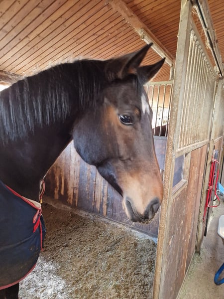 Flocky is a loving mare that has been raised with us since foalhood. She has always been well-behaved both in handling and under saddle. Due to a lack of time and rider availability, she has received limited training. Unfortunately, she has been diagnosed with a heart defect (which currently does not impair her, but should be checked periodically). Flocky is being sold at a significantly reduced price to ensure she finds a good new home. For inquiries and questions, please contact us at 09924/1260 or 0170/7130833. No dealers, please!