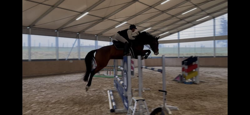„Feli ist eine überaus liebe und freundliche Stute, die sowohl in der täglichen Arbeit als auch auf dem Turnier durch ihre positive Einstellung überzeugt. Bisher wurde sie behutsam eingesetzt und ist noch nicht an ihre Grenzen gestoßen – zu Hause deutet sie bereits an, welches Potenzial tatsächlich in ihr steckt. Aktuell ist Feli bis 115 cm platziert, bringt aber definitiv das Vermögen für höhere Aufgaben mit. Besonders besticht sie durch ihre konstante Leistungsbereitschaft im Parcours: Sie ist eine Kämpferin, die immer auf die andere Seite will und stets versucht, alles richtig zu machen.“ Bei weiteren Fragen oder Videos rufen sie mich gerne an tel: 0171/8022292