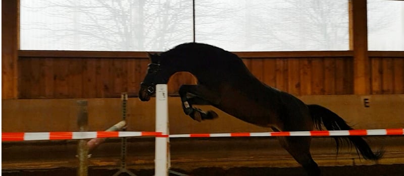 For Sale: An impressive German sport horse – an elegant and talented mare, born in 2017. With her striking bay coat and a shoulder height of 17.6 hh, she combines size, presence, and versatility. This show jumping mare is well-trained and has a solid basic education in show jumping. She demonstrates a strong jumping aptitude, with good bascule and the necessary drive to clear fences. However, she is a typical mare and not suitable for beginners; at least solid riding at Level L is recommended. The mare was bred and trained in dressage by myself. At age five, she was given three months of training to gain experience in jumping competitions at levels A and L. She handled this with flying colors and received scores of 8.6. Afterwards, she returned home and was ridden dressage 3-4 times a week. But since she repeatedly shows a desire to jump, and I primarily ride dressage, I have decided to sell her. She has been jumping once a week for the past four weeks. With a bit of patience, she could develop into a talented sport horse for more advanced disciplines. The mare is completely sound and healthy, with no issues. An older ultrasound report is available and shows no findings. If interested, I am happy to provide further information and arrange a viewing.