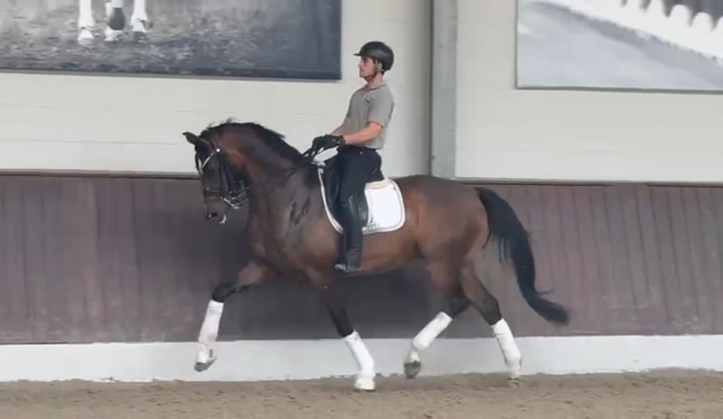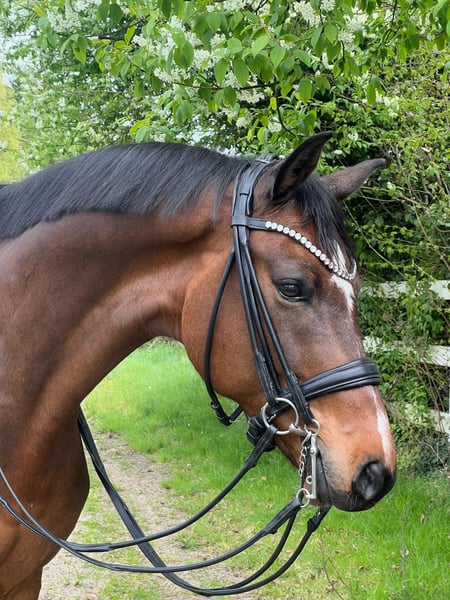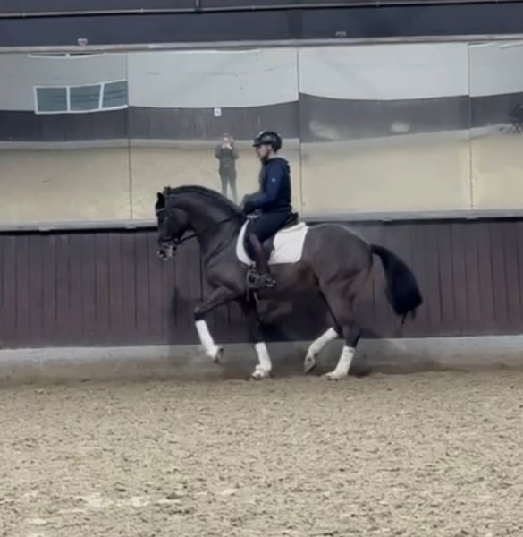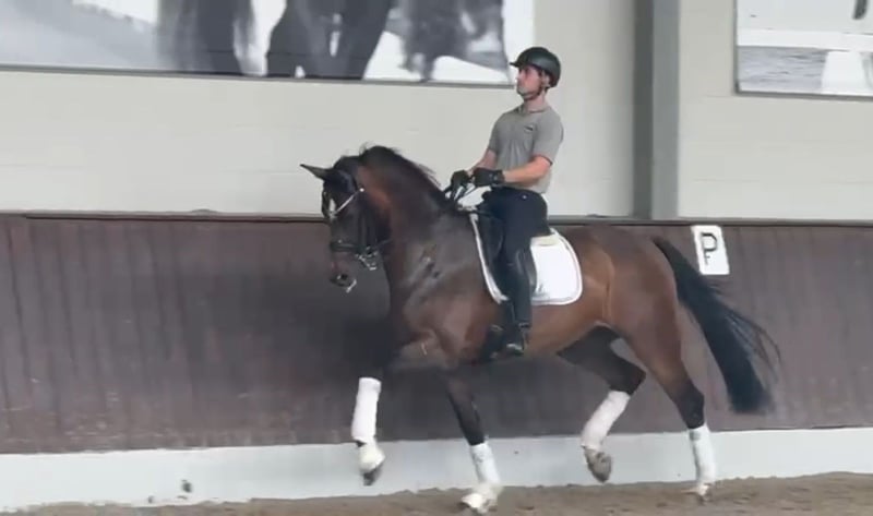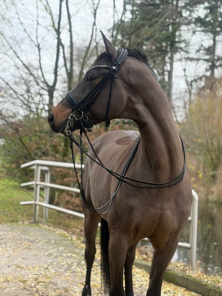 L’Espoir is a 9-year-old gelding with very good dressage training and a special character. He has been carefully trained by a professional up to the S** level. His secure piaffe, beautiful pirouettes, and reliable flying changes are particularly noteworthy. He is well-versed in the exercises, sensitive to the aids, and always eager to do everything right. As a 5-year-old, he was presented at a competition by my trainer and achieved fourth place in a dressage horse A class. However, competition sport was never my main focus. Due to personal circumstances, I had to place L’Espoir with my trainer shortly after purchasing him – the focus there was on training with the goal of bringing him back to me as a reliable teacher after a certain period of time. Unfortunately, my life has taken a different direction, which is why I have now made the difficult decision to part with him. He should finally have someone who gives him the attention he deserves. In everyday life, L’Espoir is very well-behaved and uncomplicated, occasionally a little joker, and very selective about his blanket choice – he prefers Kentucky, as everything else unfortunately doesn’t last long with him. Health-wise, he is absolutely problem-free: since I bought him directly from the breeder as a 4-year-old, he has never been sick or lame. He is familiar with the horse walker, the aqua trainer, regular turnout, trail rides, and the racetrack. Loading is also no issue – he easily walks onto the trailer or transporter and travels calmly. As a young horse, I regularly let him jump free, which he enjoyed a lot. He shows good ability in this regard – anyone considering occasional jumping or thinking in the direction of eventing will also find potential here. I wish for him a loving home where his quality is appreciated and he is seen as a true partner. He should not only function – he should also be allowed to be a horse. The price is based on his training and overall package – this is not an urgent sale. A current, good vet check from 2024 is available.
