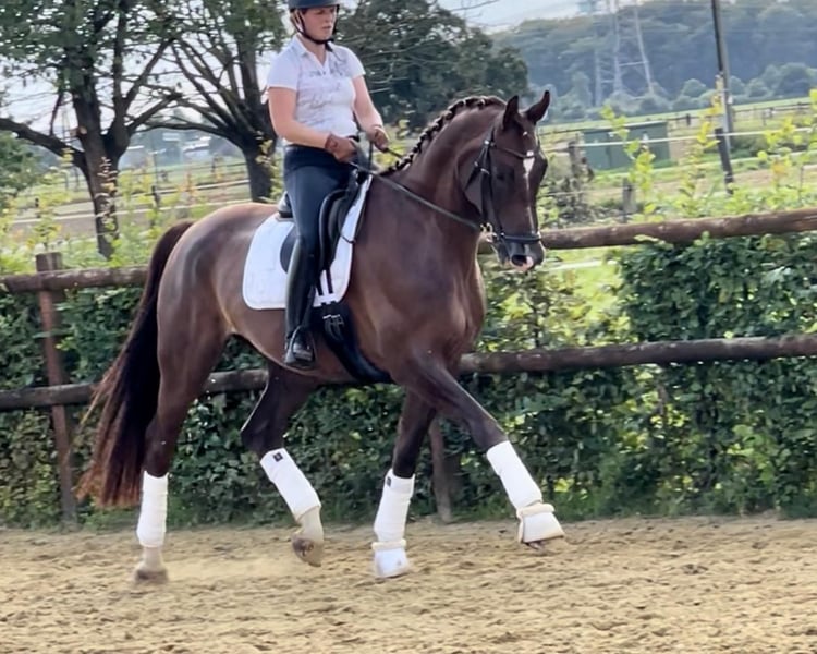 Dieser bildschöne Wallach überzeugt durch seine beeindruckende Erscheinung und sein freundliches Wesen. Mit viel Geduld und Gefühl schonend und solide ausgebildet bis zur Klasse M, zeigt er sich als verlässlicher, motivierter Partner im täglichen Training als auch auf dem Turnier. Im Umgang ist er stets freundlich, unkompliziert und nervenstark. Er überzeugt durch gute Rittigkeit, feine Anlehnung und ein sicheres angenehmes Reitgefühl. Weitere Infos und Videos auf Anfrage
