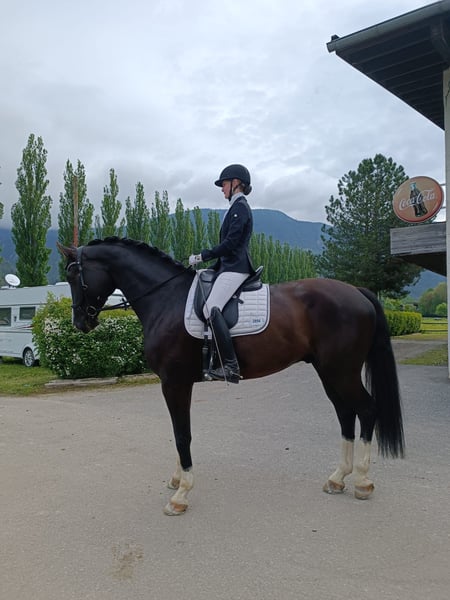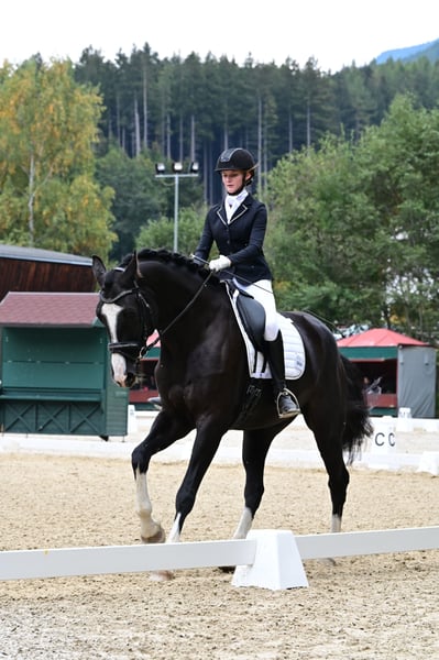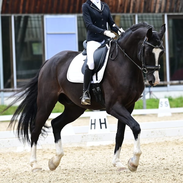 Schweren Herzens biete ich meinen außergewöhnlich lieben Rappwallach zum Verkauf an. Geboren 2016, mit einem imposanten Stockmaß von ca. 180 cm, steht er im edlen Hengsttyp – mit einer auffälligen großen Blesse und vier weißen Stiefeln. Ein echter Blickfang, der überall Eindruck hinterlässt! Dieser Wallach ist einfach ein Schatz im Umgang und unter dem Sattel – total lieb, ehrlich, willig und verlässlich. Immer bemüht, unkompliziert und mit einem tollen Charakter, der jeden Tag Freude bereitet. Ich bin mit ihm bereits mehrere erfolgreiche Turniersaisonen bis zur Klasse L gegangen. Total williges Pferd das immer alles richtig machen will. Neben seiner Dressurbegabung liebt er aber auch die Abwechslung: er geht brav ins Gelände, egal ob durchs Dorf, in den Wald oder über Wiesen – immer entspannt und mutig. Auch Sprünge macht er mit Freude und Gelassenheit mit. Er ist ein echter Partner fürs Leben – für den ambitionierten Reiter, der ein leichtrittiges, arbeitswilliges und gleichzeitig verschmustes Pferd sucht, das einfach Spaß macht. Pferd mit Zukunft im Dressursport Bei ernsthaftem Interesse freue ich mich über eine Nachricht – dieses tolle Pferd sucht nun seinen Menschen, der ihn genauso schätzt wie ich. 💫