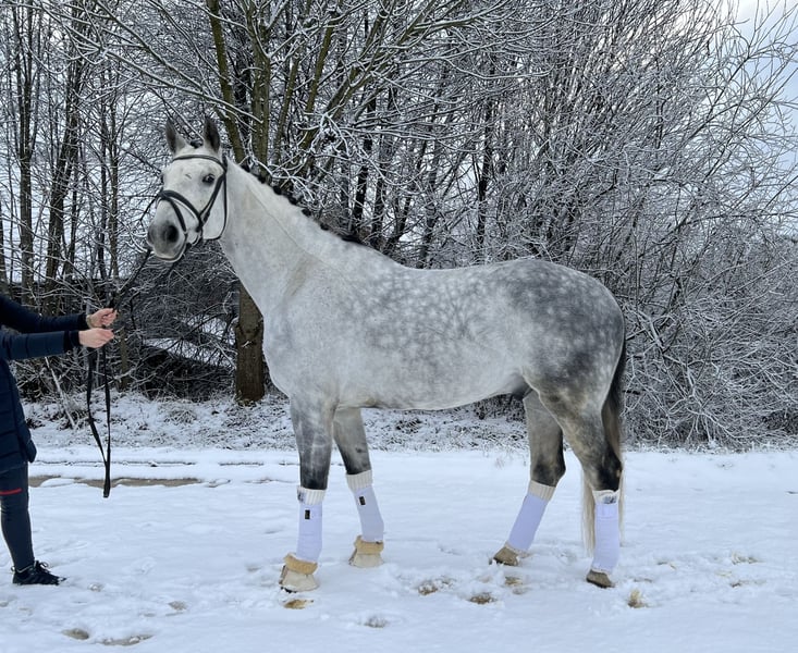 For Sale: German Sport Horse Warmblood Gelding We are offering a charming gray gelding by Sir Bedo, who impresses with his three solid basic gaits. Notably, he has a calm and balanced temperament, making him a reliable partner in any situation. In daily handling, he is always clear-headed, friendly, and straightforward. He is also considerate with children, gently guiding them through the arena. He has been trained recreationally in dressage at a secure L-level but shows great potential for further development. He is also motivated over jumps. Current X-rays are available. Please feel free to contact me for more information or if you are interested. Viewings and trial rides can be arranged by appointment.