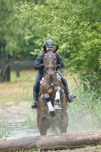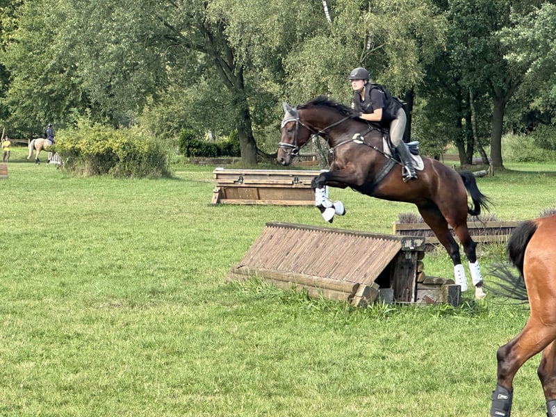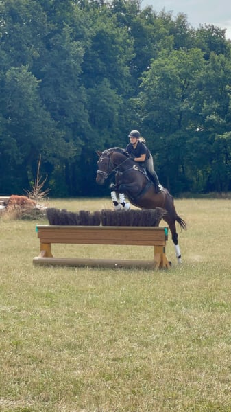 Quincy is an exceptionally sensitive horse, impressing with his three good basic gaits. He is very willing to work and, thanks to his sensitivity, a pleasure to ride. When jumping, he is always attentive and approaches the fences quickly and confidently. Out in the forest, he is a reliable partner whether riding alone or in a group. Due to his gentle nature, he quickly wins the hearts of everyone at the stable. Children can also ride him alone on the riding arena without any issues. Quincy is available due to incompatibility with my ongoing university studies. Space takes precedence over price!