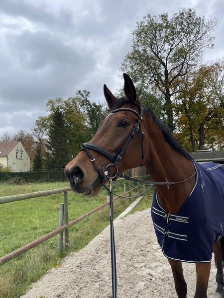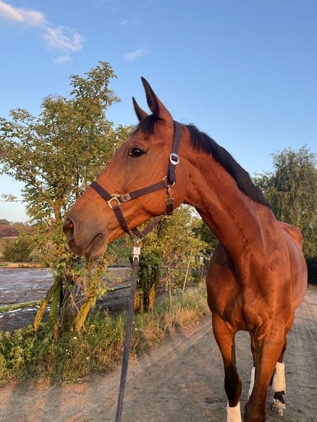 German Sport Horse for Sale – Gelding, born 2011, bay, height 187 cm This impressive German sport horse is a reliable partner for both dressage and show jumping. He impresses with his size and excellent jumping ability. With his calm demeanor and great talent, he is ideal for ambitious riders seeking a versatile and high-performance partner. He also proves to be an excellent schoolmaster. Please feel free to contact me for more information or if you are interested.