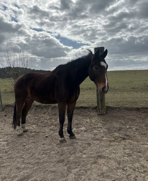 Herzenspferd sucht seinen Menschen ❤️ Dieser wunderbare 16 Jahre alter Wallach, ist im Umgang einfach ein absoluter Schatz. Er ist sehr menschenbezogen, anhänglich und genießt jede Form von Zuwendung. Ob Putzen, Kuscheln oder einfach Zeit miteinander verbringen – er ist immer mit ganzem Herzen dabei und baut eine enge Bindung zu „seinem“ Menschen auf. Im täglichen Handling zeigt er sich brav, freundlich und unkompliziert. Er möchte gefallen und ist mit viel Liebe und Sensibilität ausgestattet. Im klassischen Schulbetrieb ist er jedoch nicht richtig aufgehoben. Die vielen wechselnden Reiter sowie die Unruhe in der Gruppe überfordern ihn mental. In solchen Situationen kann es vorkommen, dass er aus Stress buckelt. Dieses Verhalten ist kein Ungehorsam, sondern Ausdruck von Überforderung. Für ihn wünschen wir uns daher ein ruhiges, verlässliches Zuhause bei einer festen Bezugsperson. Mit Konstanz, Geduld und Vertrauen denken wir, entwickelt er sich zu einem unglaublich treuen Partner, der mit seinem Menschen durch dick und dünn geht. Er steht bei uns in einer gemischten Herde und abends in seiner Box. Ein echtes Herzenspferd, das einfach den richtigen Platz sucht ❤️