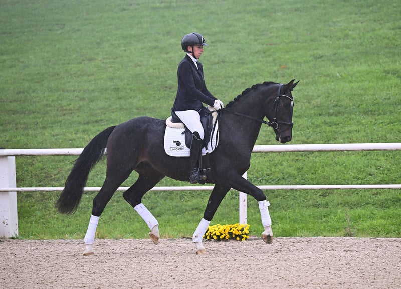 Hier geht's zur Kollektion und Online-Registrierung: https://auktion.pzvbw.de/auctions MwSt. 19 % Noch ungeschliffener Rohdiamant, der aber täglich Fortschritte macht und immer mehr zu strahlen beginnt. Drei korrekte Grundgangarten und immerwährende Kooperationsbereitschaft mit dem Reiter qualifizieren ihn zu einem qualitätvollen Ausbildungspferd. Still an unpolished diamond in the rough, he‘s making progress every day and beginning to shine ever more brightly. Three correct basic gaits and a constant willingness to cooperate with his rider qualify him as a high-quality dressage prospect.