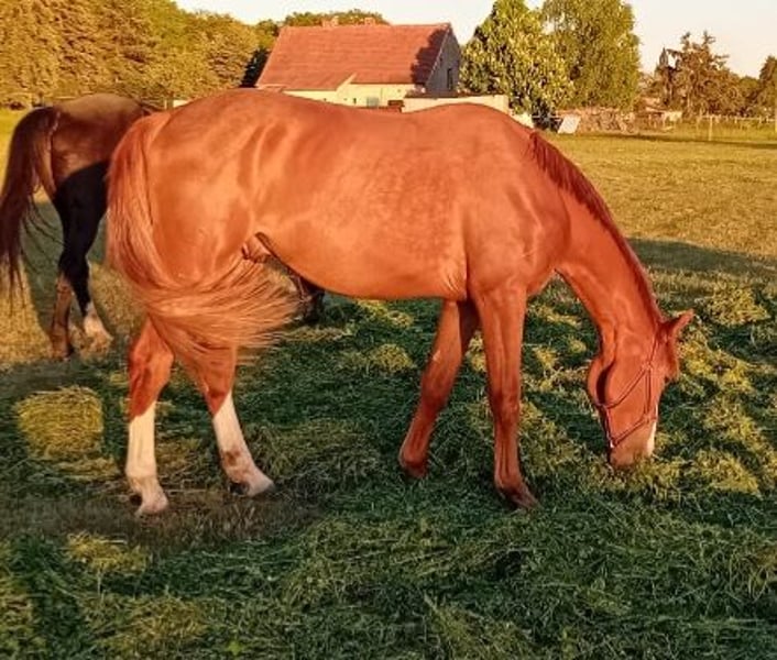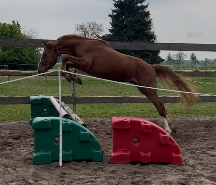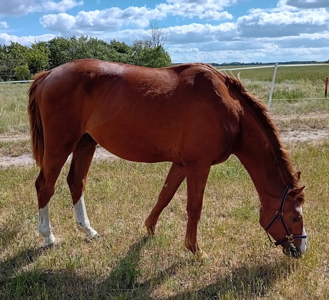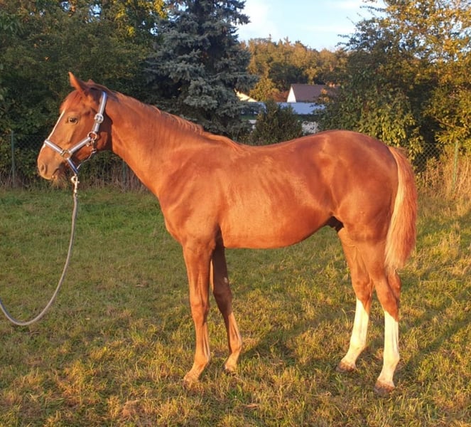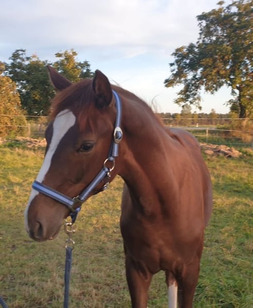 Zum Verkauf steht ein gut entwickelter 2-jähriger Wallach v. Meganus PS (Messenger x Carthago) aus einer sporterfolgreichen Mutter v. Concorde (Voltaire). Er ist im März 2023 geboren und wurde im Mai 2024 gelegt. In schicker fuchsfarbener Jacke präsentiert er sich locker und leichtfüßig in der Bewegung. Er ist umgänglich, halfterführig, schmiedefromm und weiß durch seine charmante Art zu gefallen. Leistungsbetonter, sportiver Typ, der aufgrund seiner Abstammung beste Grundvoraussetzungen für den gehobenen Springsport bietet. Vater "Meganus PS" besticht mit seinem grenzenlosen Springtalent und einer sensationellen wie seltenen Blutführung. Meganus PS sammelte in der letzten Saison unter Eiken Sato/JPN alleine neun Siege und zahlreiche weitere Platzierungen in der nationalen und internationalen Youngster-Tour, bei der Springpferde-WM, dem Bundeschampionat der Siebenjährigen und dem Dobrock-Championat. Zuvor gelangen ihm unter Patrick Stühlmeyer Seriensiege, darunter die Titelverteidigung beim prestigeträchtigen Dobrock-Championat (9,2) und der Gewinn des Qualifikationsspringens beim Bundeschampionat (8,8). Weitere Infos einsehbar unter: https://schockemoehle.com/Meganus-PS/DE418180038416 Mutter "Warma" war selbst in Springparcours bis 1,35 m erfolgreich unterwegs und wurde aufgund ihrer sportlichen Leistung als KWPN-Sterne-Stute sowie mit der DSP-Prämie "Sport" ausgezeichnet. Der Wallach entspringt aus einem erfolgreichen und leistungsstarken Mutterstamm - einzusehen unter: https://www.kwpn.org/kwpn_database?horse=p-337700 -> Menu -> Performance damline Bei ernsthaftem Interesse können gerne aktuelle Fotos und Videoaufnahmen übermittelt oder direkt ein Termin zur Besichtigung vereinbart werden.