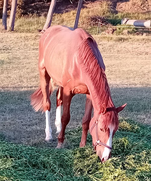 Se ofrece a la venta un potro de dos años bien desarrollado, un caballo de salto con una ascendencia destacada: hijo de Meganus PS (Messenger x Carthago) de una madre con historial deportivo, Warma (Voltaire). Nació en marzo de 2023 y fue presentado en mayo de 2024. Con un elegante pelaje en color alazán, se muestra con movimientos sueltos y ligeros. Es amigable, halftero, forjado y cautiva por su carácter encantador. Un tipo deportivo y orientado al rendimiento, que gracias a su linaje ofrece las mejores condiciones para la alta competición en salto. El padre, Meganus PS, destaca por su talento ilimitado para el salto y una línea de sangre sensacional y poco común. En la pasada temporada, Meganus PS logró nueve victorias y numerosos puestos en la Youngster Tour, tanto a nivel nacional como internacional, participando en el Campeonato Mundial de Caballos Jóvenes, el Campeonato Federal de caballos de siete años y el Dobrock-Championat, bajo la monta de Eiken Sato/JPN. Anteriormente, bajo Patrick Stühlmeyer, acumuló series de victorias, incluyendo la defensa de su título en el prestigioso Dobrock-Championat (9,2) y la victoria en la prueba de clasificación para el Campeonato Federal (8,8). Más información en: https://schockemoehle.com/Meganus-PS/DE418180038416 La madre, Warma, compitió con éxito en saltos hasta 1,35 m y fue distinguida como yegua KWPN de estrella y con la prima "Deportiva" de DSP por su rendimiento deportivo. El potro proviene de una línea materna exitosa y con alto rendimiento, consultable en: https://www.kwpn.org/kwpn_database?horse=p-337700 -> Menú -> Línea materna de rendimiento Para interés serio, se pueden enviar fotos y videos actuales, o concertar una visita directamente.