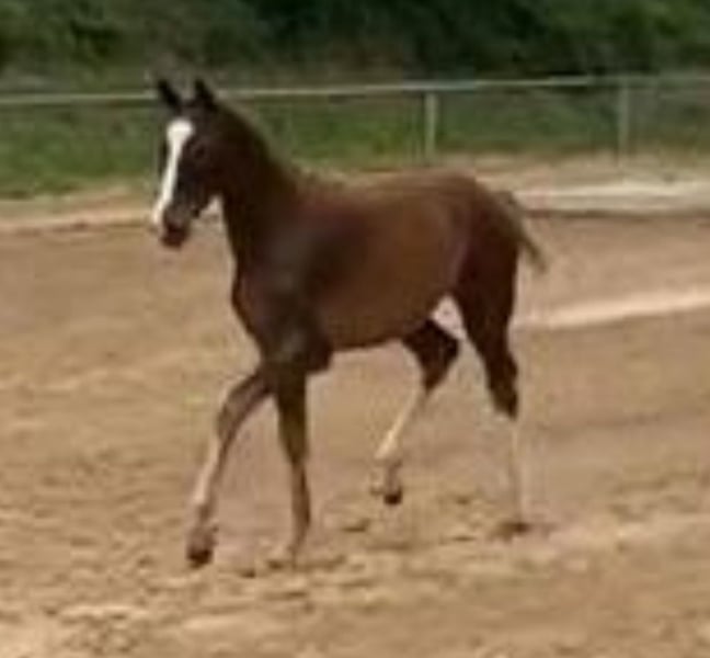 For sale is a well-developed yearling stallion by Meganus PS (Messenger x Carthago) out of a successful dam by Concorde (Voltaire). He can be laid on request. In a chic chestnut-colored jacket, he presents himself relaxed and light-footed in movement. He is sociable, masters the foal ABC and has a lot of charm. A performance-oriented, sporty type who, due to his pedigree, offers the best basic requirements for high-level show jumping. Sire "Meganus PS" impresses with his boundless jumping talent and a sensational and rare bloodline. With eleven victories alone, including defending his title at the prestigious Dobrockchampionat (9.2) and winning the qualifier at the Bundeschampionat (8.8), Meganus PS built on previous show jumping successes under his trainer Patrick Stühlmeyer in 2022. Further information can be viewed at: https://schockemoehle.com/deckstation/hengste/meganus-ps Dam "Warma" was herself successful in show jumping competitions up to 1.35 m and was awarded a KWPN star mare and the DSP "Sport" premium for her athletic performance. The colt comes from a successful and powerful damline - to be viewed at: https://www.kwpn.org/kwpn_database?horse=p-337700 -> Menu -> Performance damline If you are seriously interested, please send us current photos and video recordings or make an appointment for a viewing.