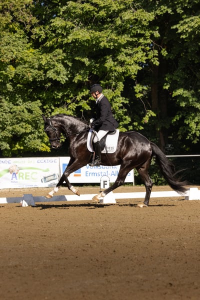 Due to personal circumstances, I am looking for a sport-oriented home for my 3.5-year-old gelding, provided everything fits well. He has an absolutely wonderful character, making him suitable even for a young rider with a trainer. He was gently backed in March and has been ridden once a week ever since. He has already participated in competitions and was impeccably behaved, calmly grazing next to the trailer. His 2-year-old sister is also here and can be visited. His mother is an elite mare. Please contact me by phone if interested.