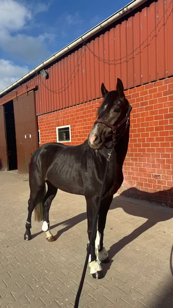 For sale is this 2022-born son of Hickstead Blue out of Monte Cain. This gelding already feels confident under saddle and has completed his first jumps with a rider. Despite his young age, he demonstrates good awareness and a lot of potential at the jump. Have we piqued your interest? Please contact us; we are happy to answer any questions! Additionally, we have several other quality horses available that might interest you. Laura Waldmann 0162 9457909 Amelie Schunke 0151 42463745